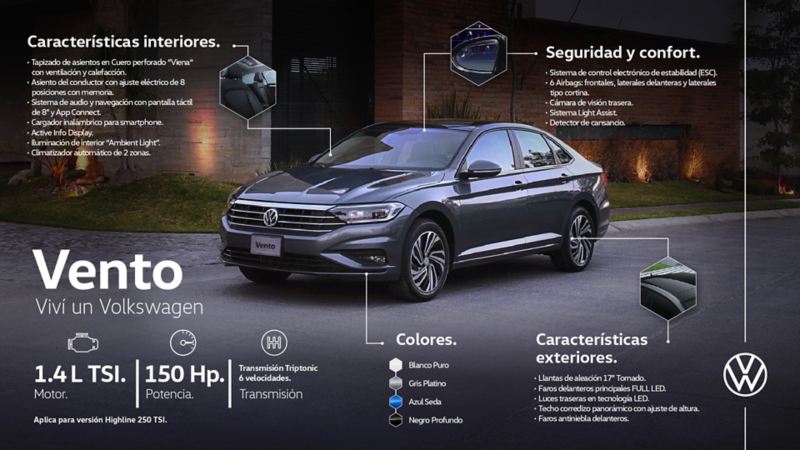 La nueva mirada del Vento está compuesta por sus faros delanteros de última generación y sus luces traseras, resaltando su diseño elegante y moderno.